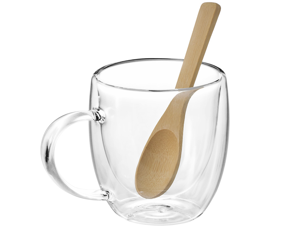 — Практичный комплект — кружка 250 мл, ложечка 13 см и удобная подставка 16×11,3 см.
